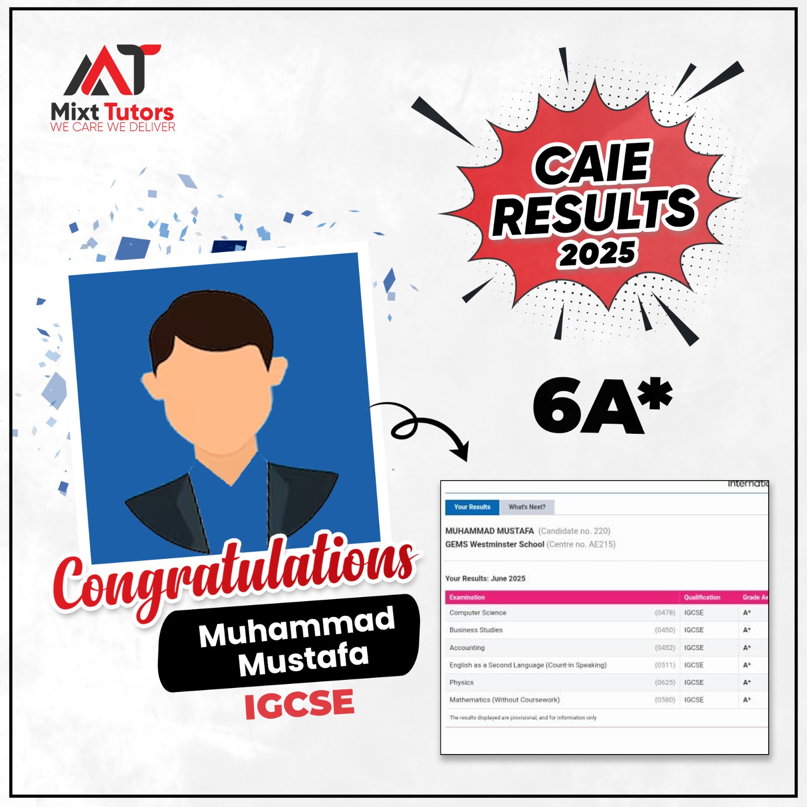 EXCELLENT Based on 231 reviews Imran Ali2025-08-24Trustindex verifies that the original source of the review is Google. My daughter was studying Aqa Physics with Sis Amir Waleed. One of the best physics teacher in the world. Afnan Akber2025-08-23Trustindex verifies that the original source of the review is Google. Dr. Qaiser Saleem's chemistry classes are amazing! My child achieved A* in IGCSE thanks to his guidance. ali Shah2025-08-23Trustindex verifies that the original source of the review is Google. Miss Humaira Iftekhar's biology classes are informative and interactive. She makes learning fun and easy. My child loves her classes! Shahid Waseem2025-08-23Trustindex verifies that the original source of the review is Google. One of the best academy for A Level tuition. My A Grade credit goes to Mixt Tutors. Regards Tijamal Jutt2025-08-23Trustindex verifies that the original source of the review is Google. My daughter was studying math with sit mussawar Yaseen and she got 9 grade in her IGCSE edexcel exams. Highly recommended Meerab Masih2025-08-23Trustindex verifies that the original source of the review is Google. Sir Abdullah Khan is an outstanding tutor! My nephew achieved an A grade in his IGCSE exams under his guidance. His teaching style is engaging, and he has a gift for explaining complex concepts in a simple way. Highly recommended! Haseeb Ahmad932025-08-23Trustindex verifies that the original source of the review is Google. I have good experience with Mixt home tutors. Staff is so polite, helping as well as co operative. One thing that i like the most they reponse so quickly and never let you wait for long period of time🌸 i Highly recommend to all tutors and families a brand platform Tayyab Rajpoot2025-08-23Trustindex verifies that the original source of the review is Google. Huge salute to Sir Ubaid Khan for helping my kid achieve an A* in AQA Physics! We're really grateful for his expertise and support. Ali Hamza2025-08-23Trustindex verifies that the original source of the review is Google. Amazing Experience All credit of 4A* goes to Mixt Academy. Hihly regards to Sir Mussawar Yaseen, Sir Amir Waleed, Sir Abdullah Khan and Sir Sir Usman. Quratulain Mohsin2025-08-23Trustindex verifies that the original source of the review is Google. Worst institute worst and uneducated behavior of staff socially Mr Ali he want only money in dirham ask give me dirham give me dirham they are doing business not giving education And Mr owner how you know I offer 5000 rupees i offer 110 AED for per subject it’s 440 AED for 4 subjects 440 * by 77 it’s 33,880 rupees shame on you on your reply .Verified by TrustindexTrustindex verified badge is the Universal Symbol of Trust. Only the greatest companies can get the verified badge who has a review score above 4.5, based on customer reviews over the past 12 months. Read more